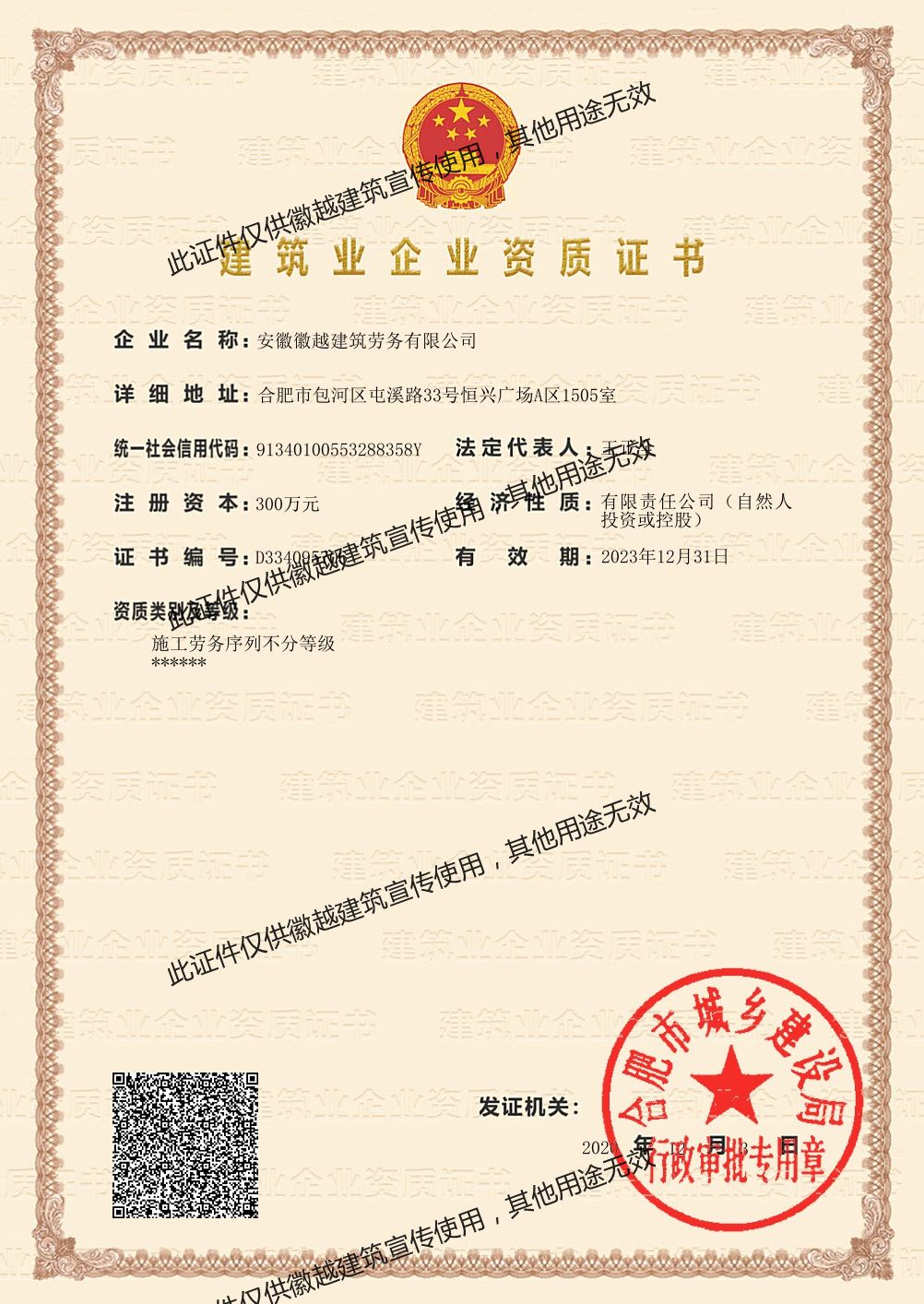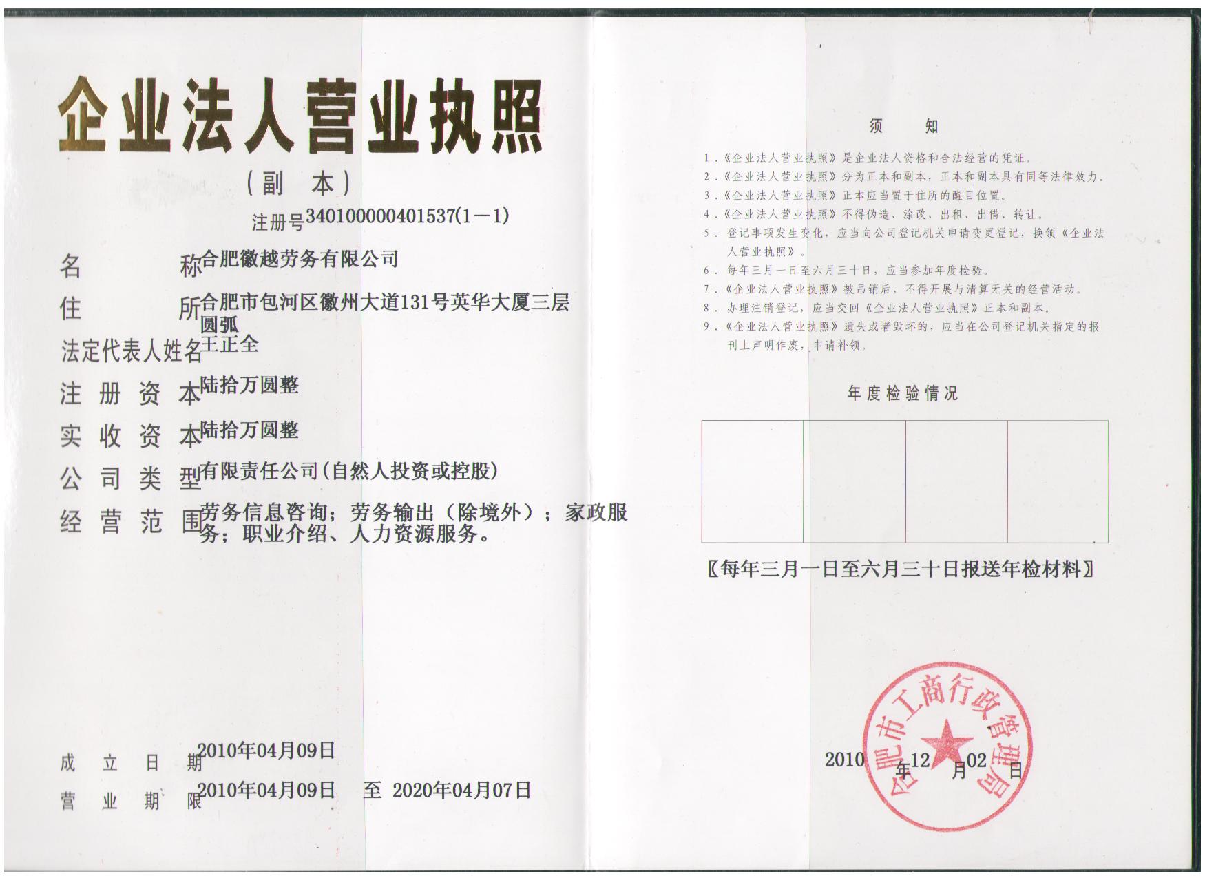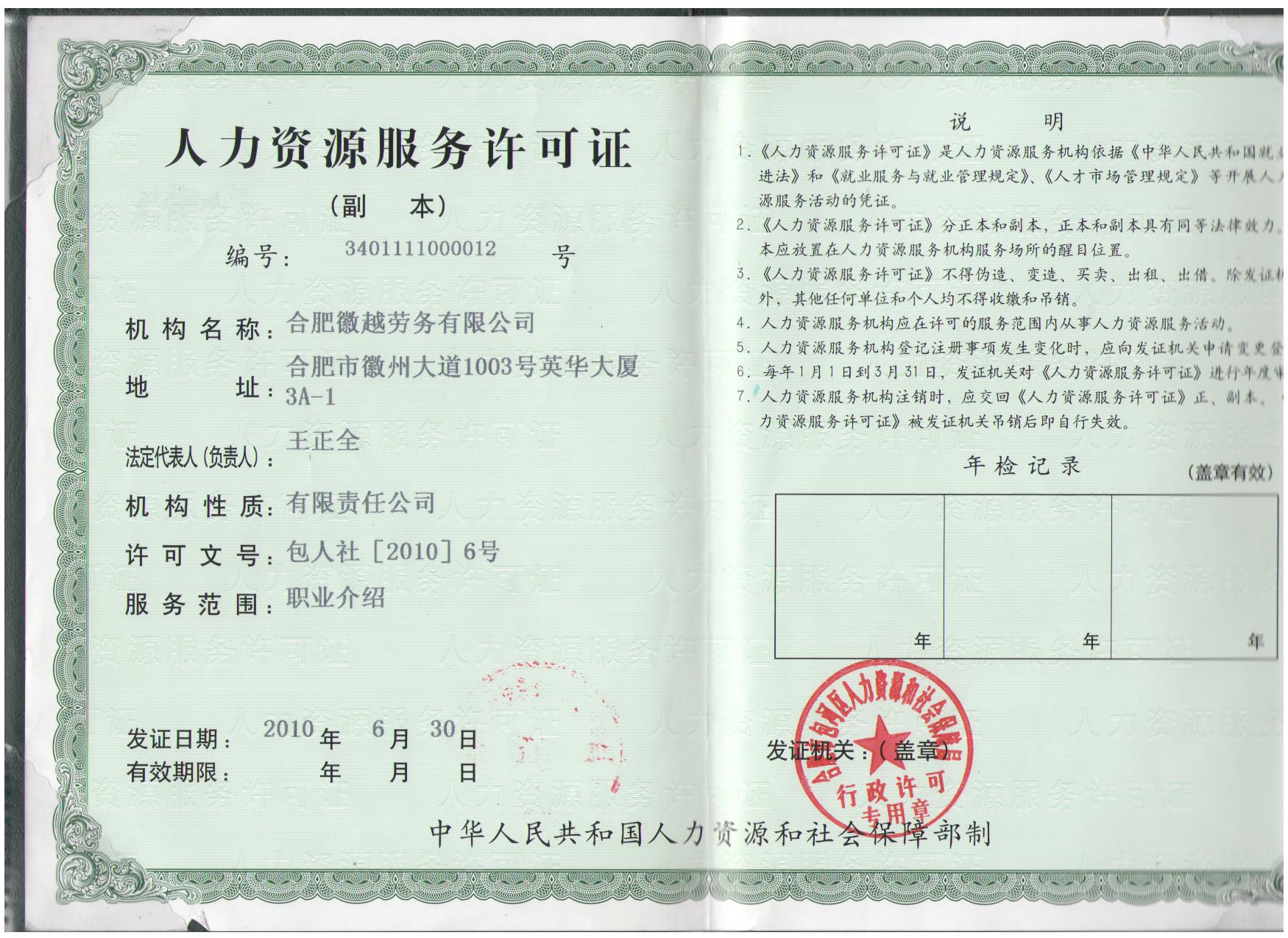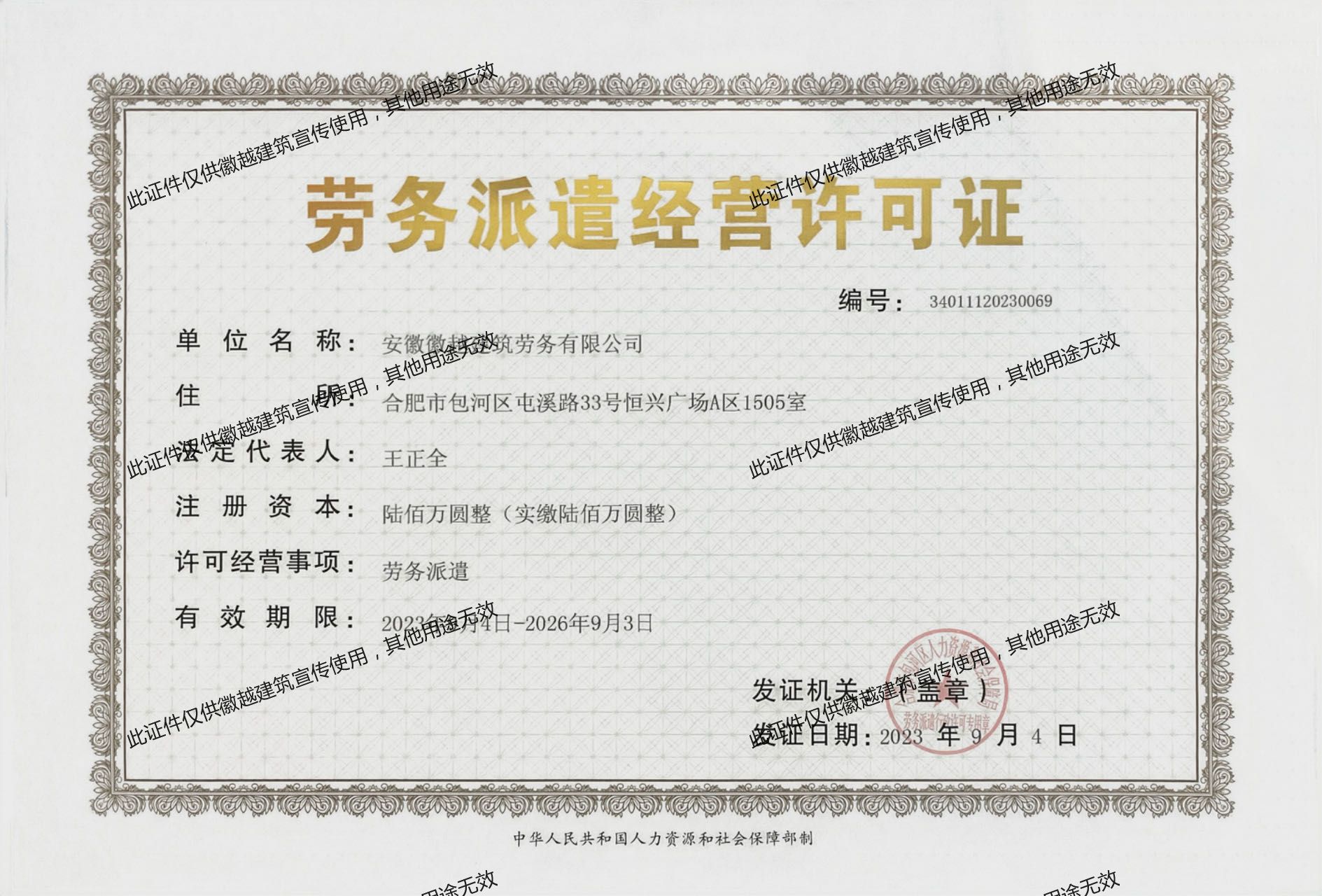 徽越公司自2008年中建總公司及多家世界500強企業授權招工資格以來,在同行業知名度信譽 度較高。徽越公司是安徽省一家經過合肥市工商行政管理局(安徽省工商行政管理局備案審核)、合肥市勞動和社會保障局及合肥市建設委員會(安徽省建設廳資質審批)審核批準成立的正規合法的且具有豐富建筑勞務輸出和項目施工管理經驗的信譽良好的勞務派遣和勞務分包...>>查看詳情